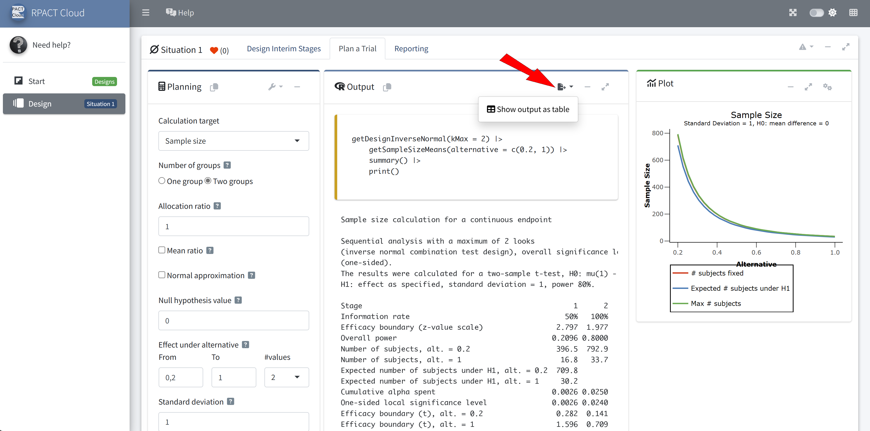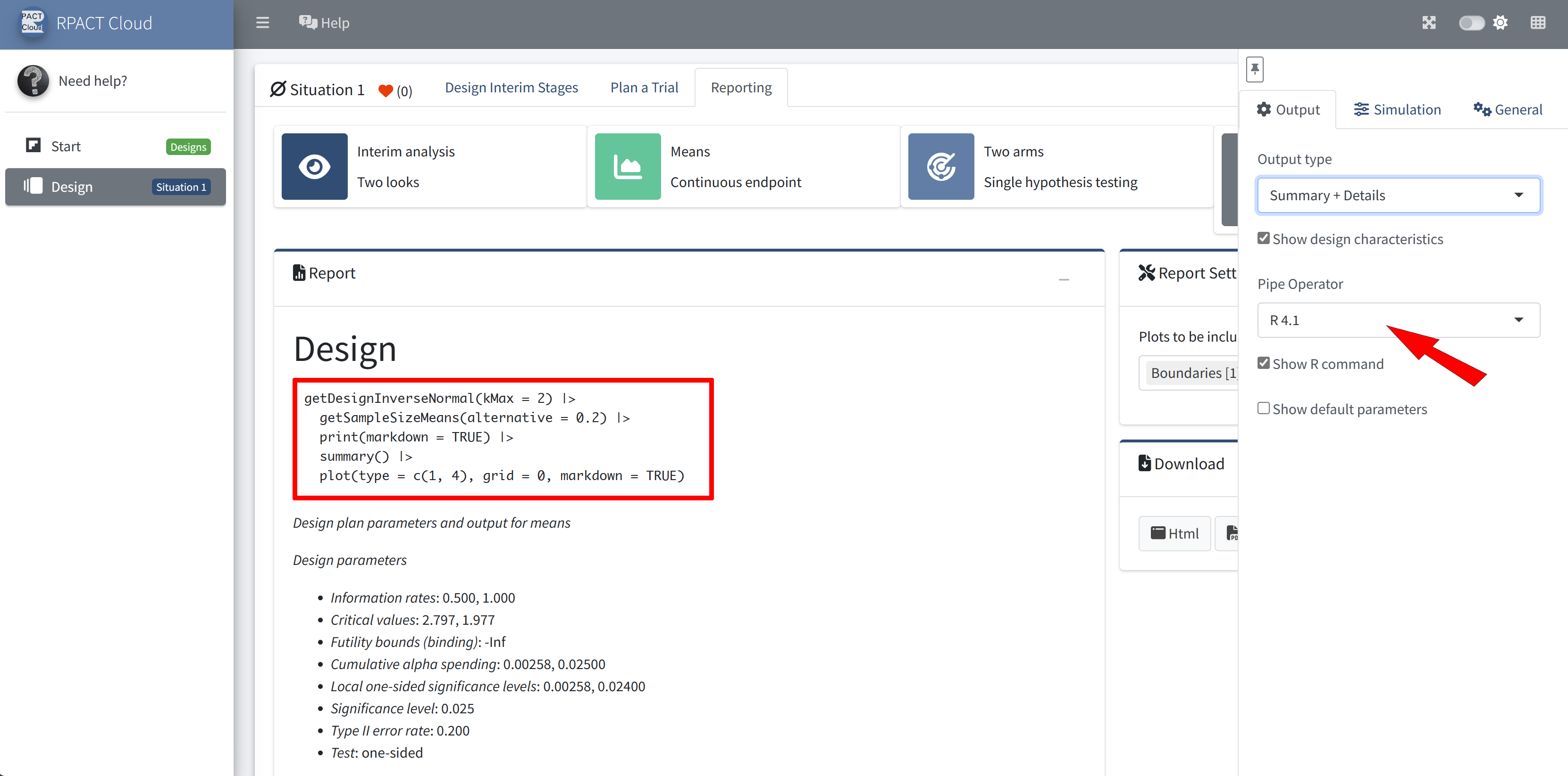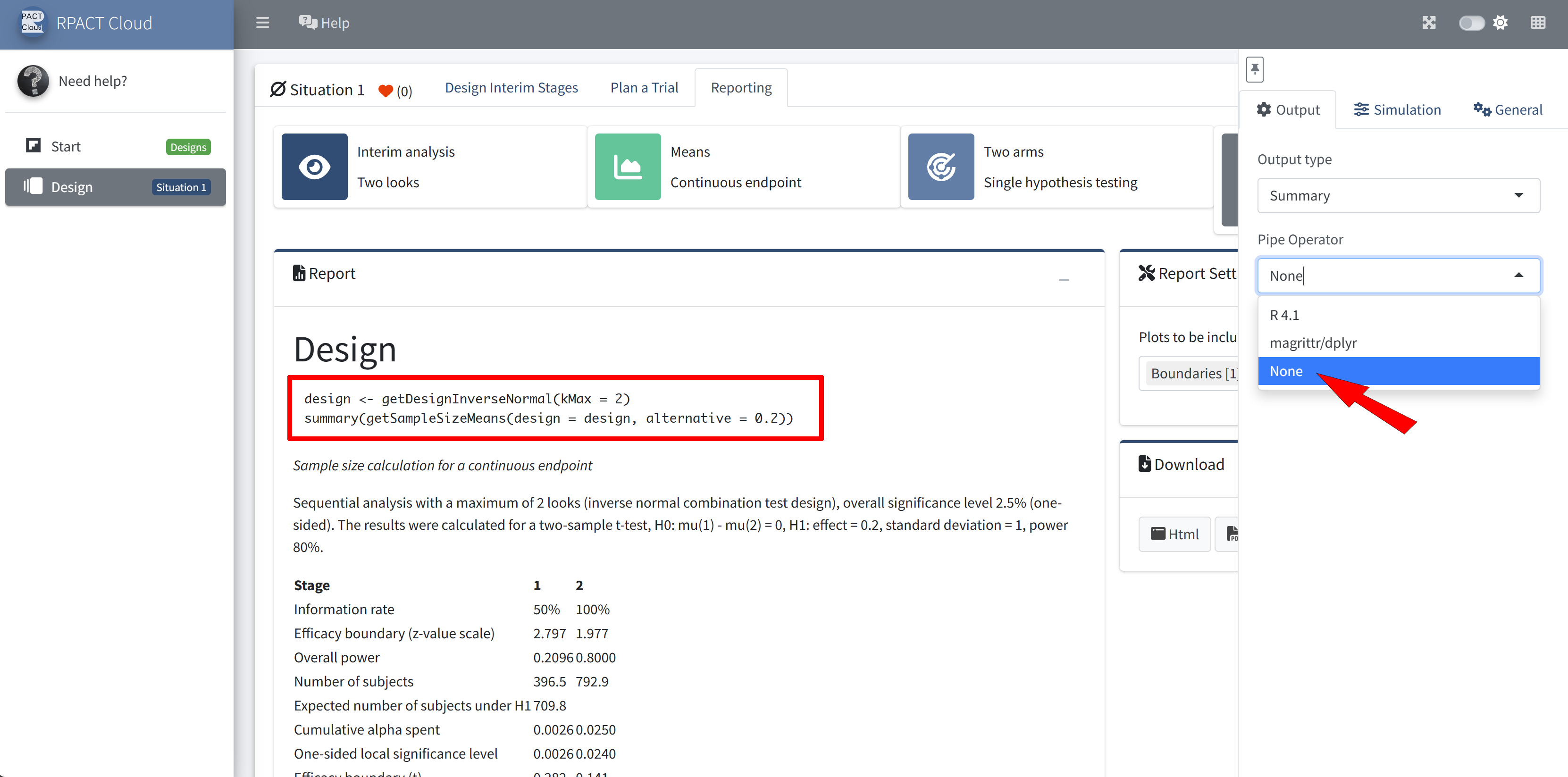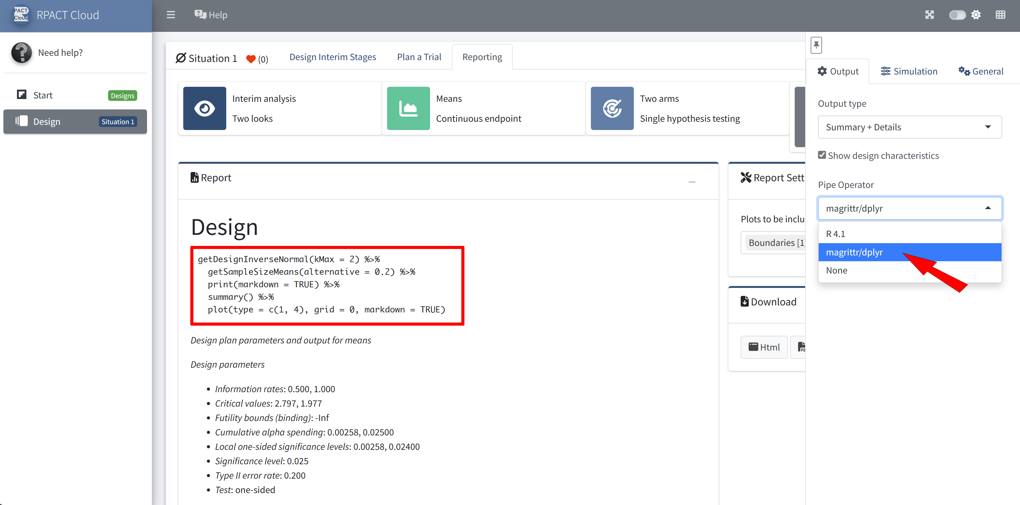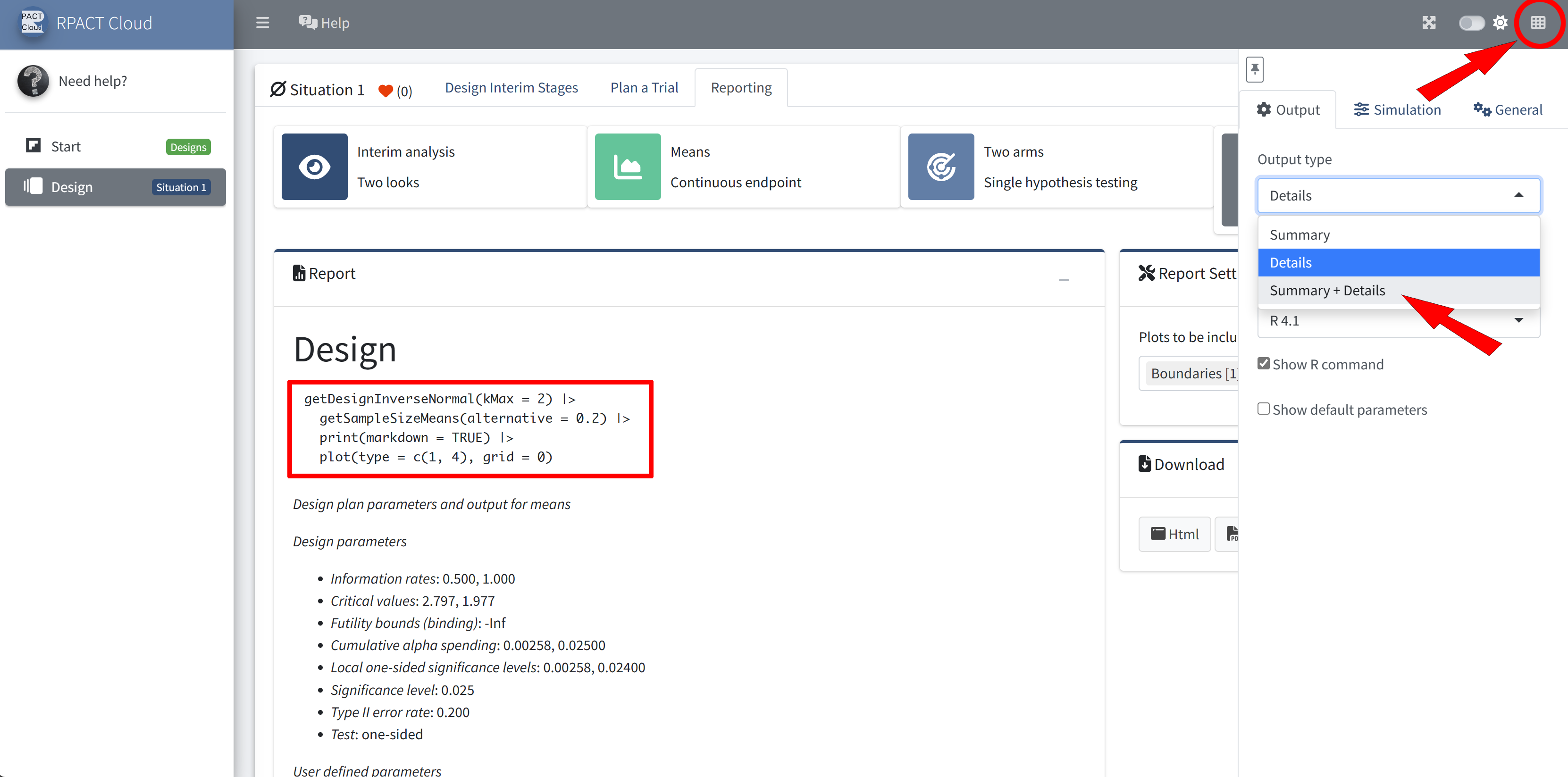 RPACT Cloud – Output Options